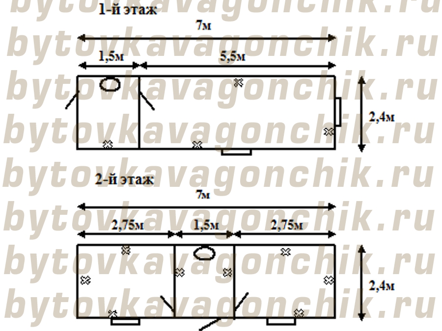 1.Блок -контейнер  БК 7,0*2,4*2,5 -1шт.     (1-й этаж)